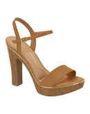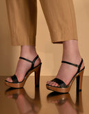 Women's high heels with a lightweight wooden design and ankle straps, with a front rest and foam sole.